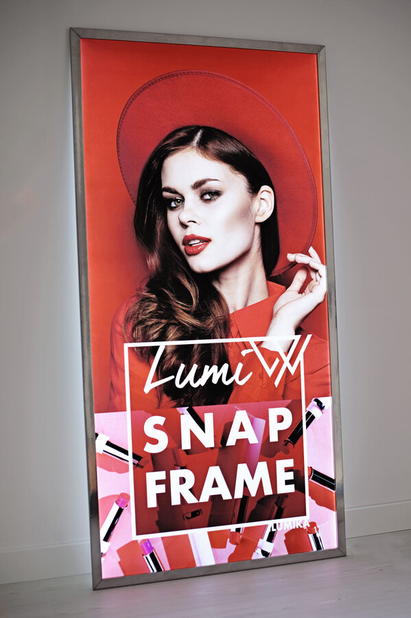 Rama OWZ (otwórz-włóż-zamknij) do wydruków na folii backlight/plakat. Cienkie ramy rozpraszają światło równomiernie na całej płaszczyźnie jak w telewizorach LCD.